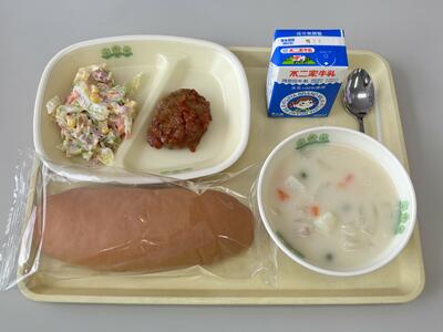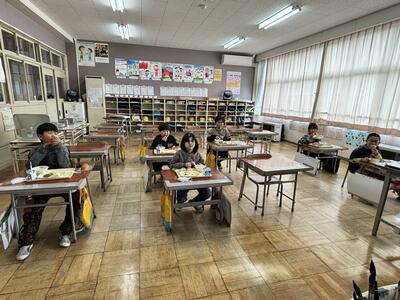 今日は、大船渡港で水揚げされた「さんま」のかば焼き、地元産の「ほうれんそう・キャベツ・ねぎ」と岩手県産の「小麦粉」を使用した「はっと汁」の、岩手のめぐみいっぱいのメニューでした。海の幸や山の幸、豊かな「食財(しょくざい)」に恵まれた岩手県のすばらしさを、美味しい給食をとおして学んだ子どもたちでした。笑顔いっぱい、お腹いっぱい、感謝の気持ちもいっぱいです。ごちそうさまでした。