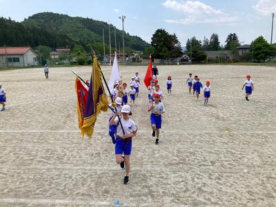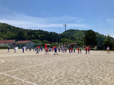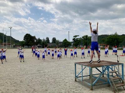 全校で開会式の練習を行いました。全体の動きの確認がメインでした。今後は、1年生による開会の言葉や応援団長による選手宣誓など、自信をもって発表できるように練習を重ねていきます。そんな中、ラジオ体操で指揮台に立つ6年生は、自分の役割を自覚して自主的に練習をしていたとのこと。全校のお手本になる動きで、素晴らしいパフォーマンスに感心させられました。これからの気温の上昇とともに、子どもたちの練習への熱も上げていきたいと思います。熱中症には十分気を付けながら…。