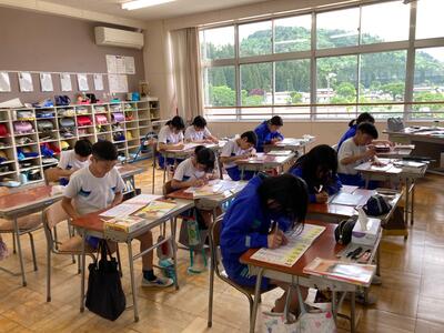 【写真3】練習後でもしっかり学習に集中できる6年生
