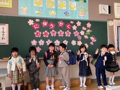 今日は入学式!今年は7名の1年生です。色とりどりのランドセルを背負って、やってきました。式が始まる前から、ちょっぴり緊張していた子どもたちでしたが、終わって一安心したところで、笑顔とともに豊かなの個性が見られました。これから始まる小学校生活で、自分らしさを色鮮やかに花開かせたいと思います。