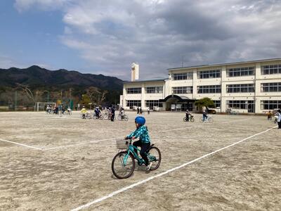 天候に恵まれ、交通安全教室が実施できました。低学年は、学校から商店街を回って実際に道路の安全な歩き方を、高学年は、校庭に設置された特設コースで自転車の安全な乗り方を学びました。どの学年も、「自分の命を守る」ために、周囲の状況に気づき、どのようにすればよいか考え、正しい判断で行動することを体験を通して学び、そのことが「周りの人の命を守ることにつながること」の意味を考えました。