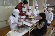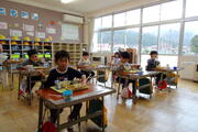 1年生 給食デビュー 投稿: 主担当1 (12:07) 入学3日目、1年生が待ちに待った給食デビューを果たしました!大きな白衣に身を包んだ小さな「給食当番さん」たちは、協力して一生懸命に配膳。自分たちで準備した給食を、みんなで「もりもり」と食べました。笑顔あふれる、頼もしい第一歩となりました。 Tweet -
